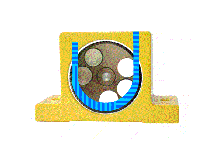 振動由轉(zhuǎn)子的正、負轉(zhuǎn)矩的不平衡而引起的離心力產(chǎn)生。轉(zhuǎn)子由一對重型預(yù)潤滑帶防塵圈的球軸承支承,特制的潤滑脂確保證其工作壽命。