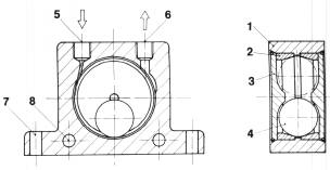 殼體兩端置有尼龍端蓋,用來定位鋼球,同時防止灰塵和水的進入,因此可使本機工作于多塵潮濕的環境中。進、出氣口均有標準管螺紋,使排氣可由管路引出,確保排氣無障。為適應不同安裝位置,本機上有4個安裝孔:兩個水平,兩個垂直。