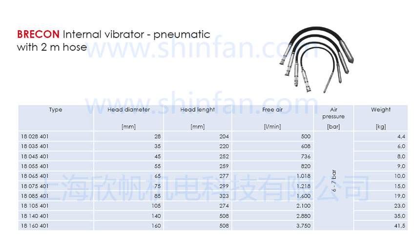 布雷肯氣動內部振動器可以在28毫米 ,35毫米 ,45毫米 ,55毫米 ,65毫米 ,75毫米 ,85毫米 ,105毫米 、140毫米 和160毫米直徑。你的優點使用布雷肯氣動內部振動器: