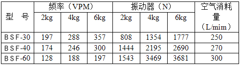BSF系列氣錘式振動器為高強度鋁合金。主要結構由撞擊件和氣室組成,內無彈簧等易損件,并可任意位置,任意方向安裝。其利用壓縮空氣驅動氣室內撞擊件往復運動而產(chǎn)生一規(guī)則性振動,對架橋堵塞現(xiàn)象破壞效果極佳。此振動的振動力度大小及頻率均可由調節(jié)壓縮空氣的壓力大小及流量來控制,并能瞬間啟動和停止工作。